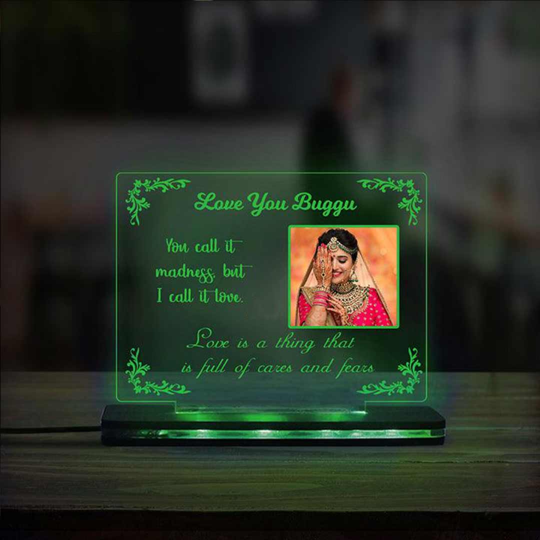 3D Acrylic Multi-Led Table Lamp is the best way to makes your bride feel extra special. This exquisite lamp combines the beauty of 3D visuals with the enchanting glow of multi-color LED lights. Creating a captivating centerpiece that will illuminate her heart.