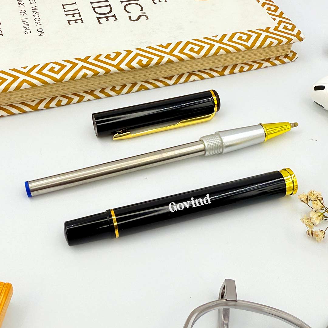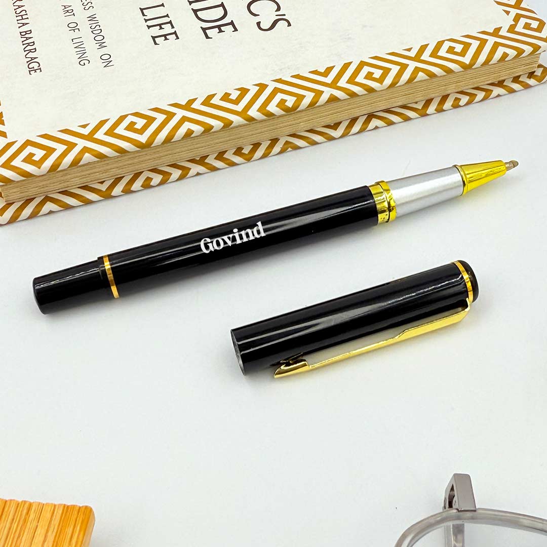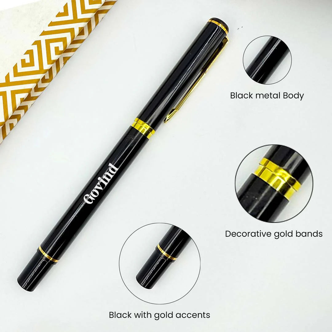 Personalized Black Metal Body With Decorative Gold Clip Pen