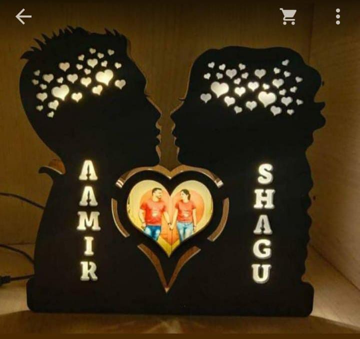 Wooden Couple Led Lamp with Name & Photo-15x15