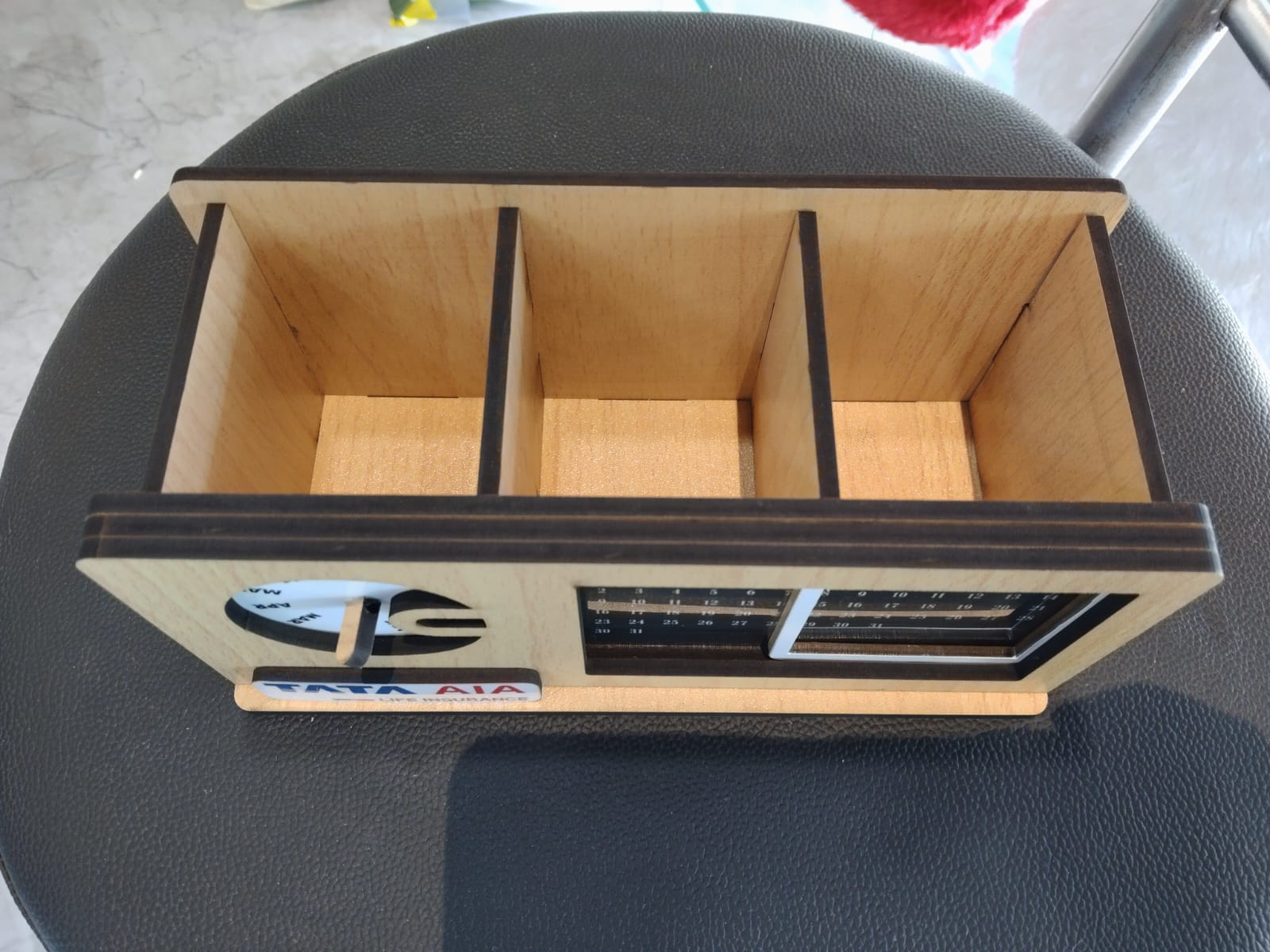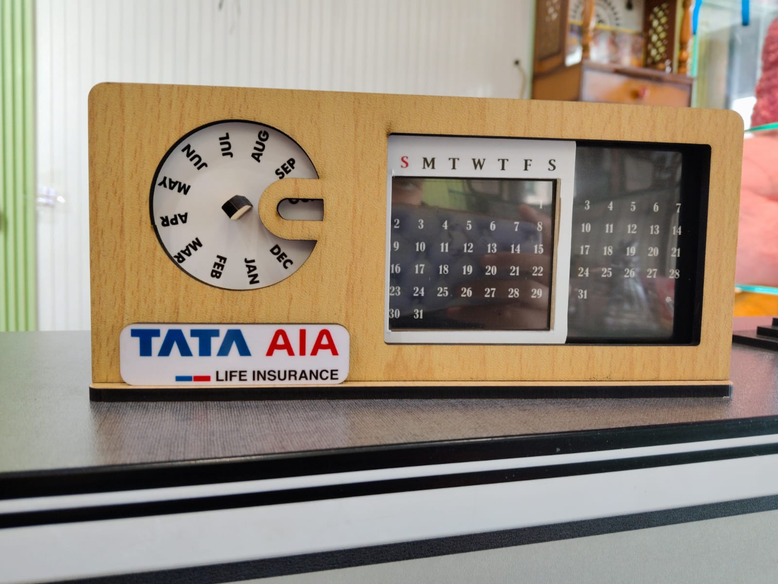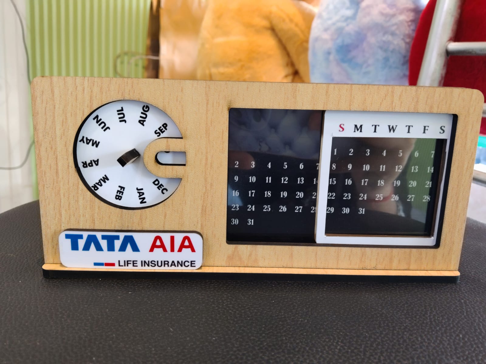 Wooden Perpetual Desk Calendar with Pen Holder 3 Compartments